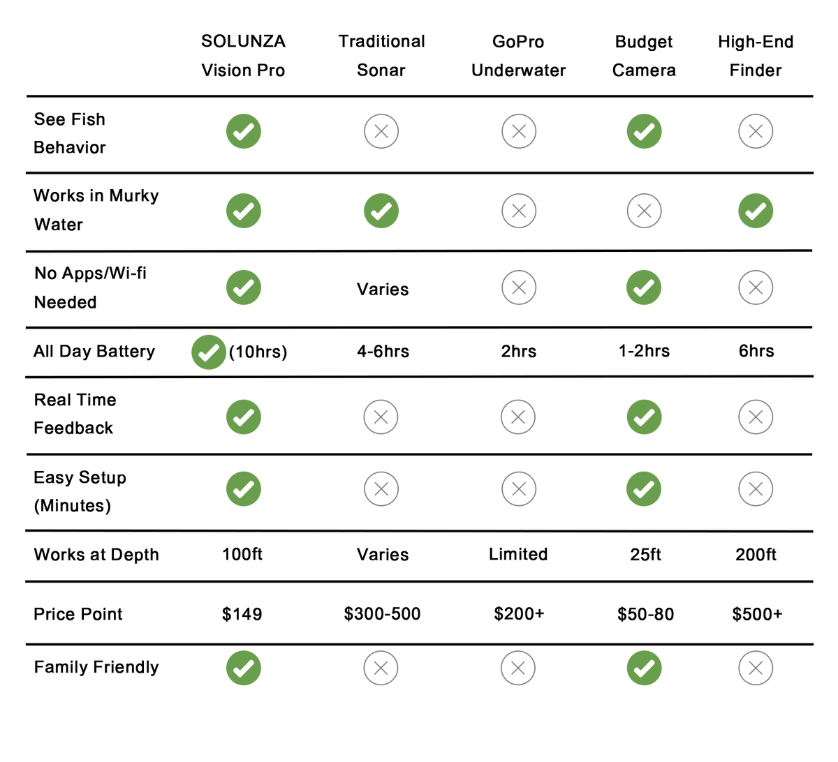 SOLUNZA Vision Pro lets you watch fish approach, inspect, reject, or strike your bait in real time, so you stop guessing and start adjusting instantly.