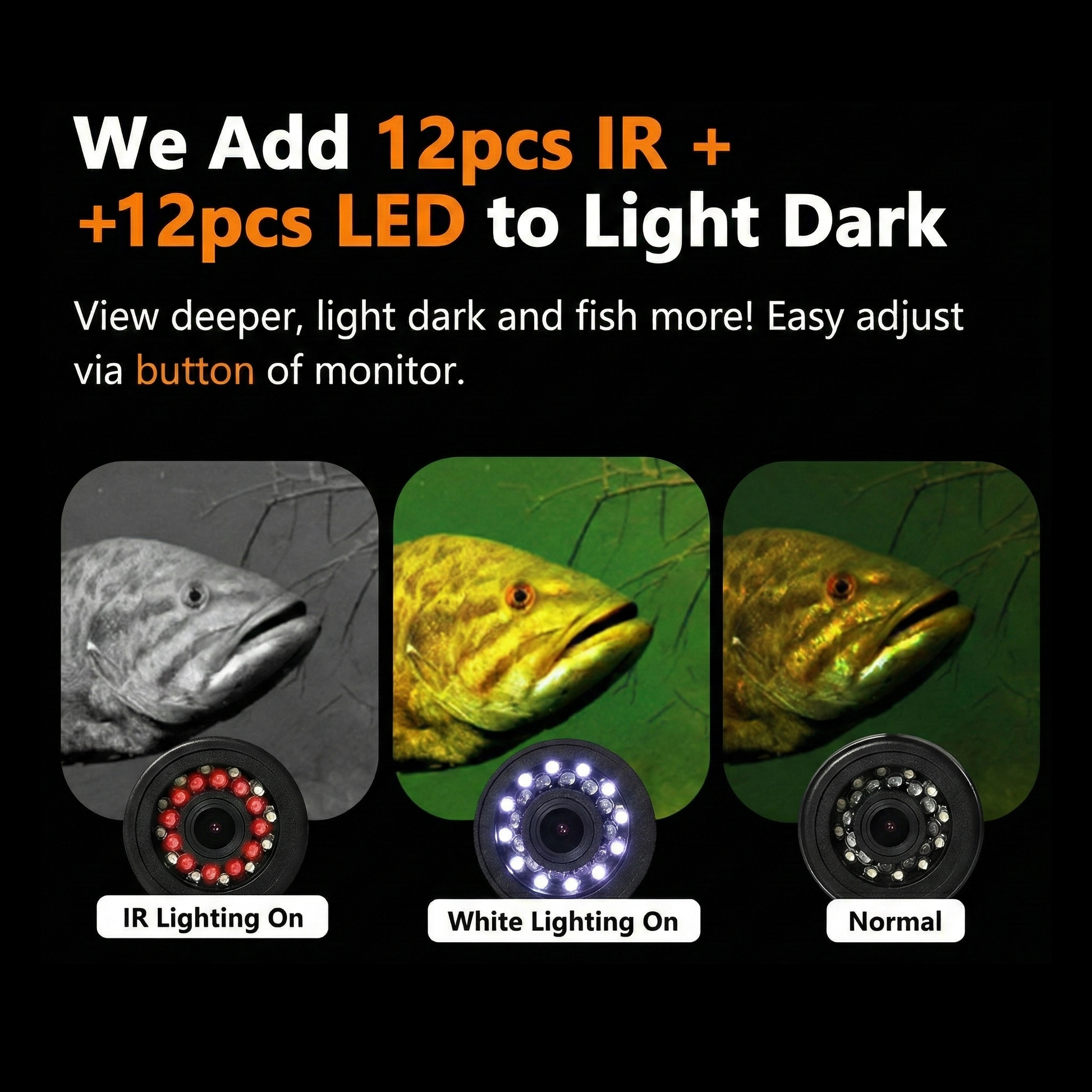 1080P TrueVision™ optics, wide angle lens, and military grade LED + infrared lighting deliver up to 3x clearer visibility than standard cameras, even in murky, deep, or low light water where sonar and cheap cameras are useless.